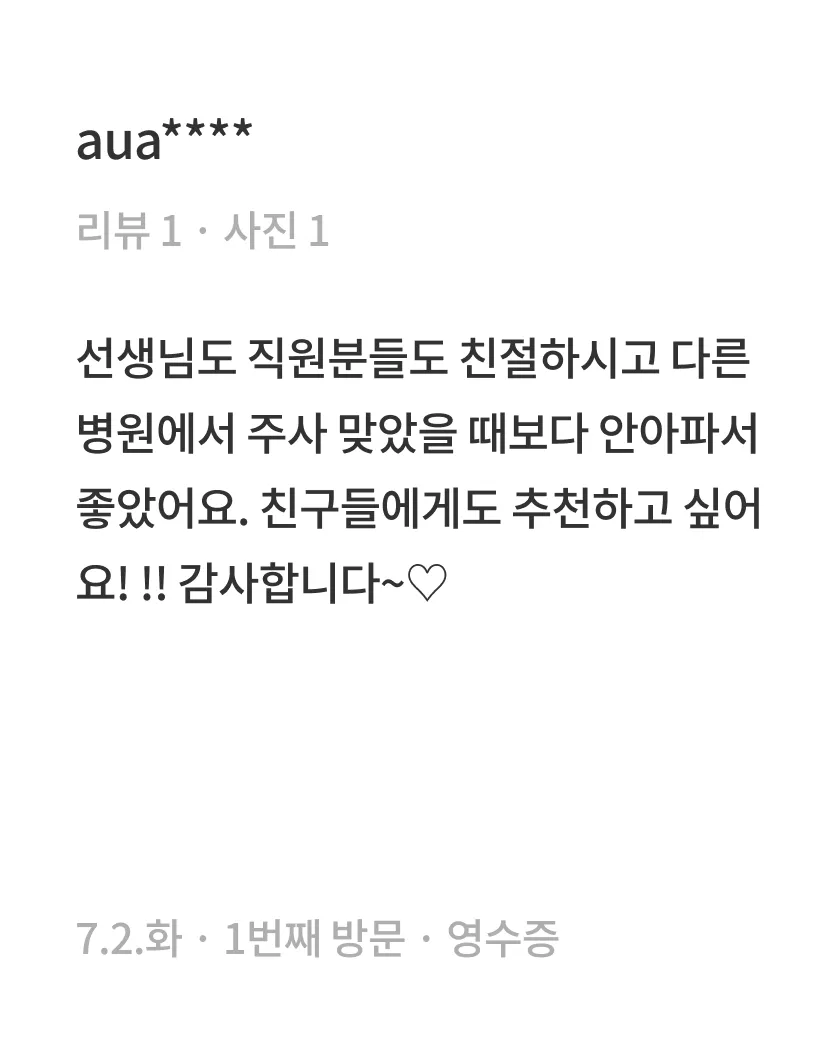 • 일반적으로 시술 후 붓기는 2~5시간 이내로 사라지지만, 컨디션에 따라 다음날까지 붓기가 유지될 수 있습니다.
